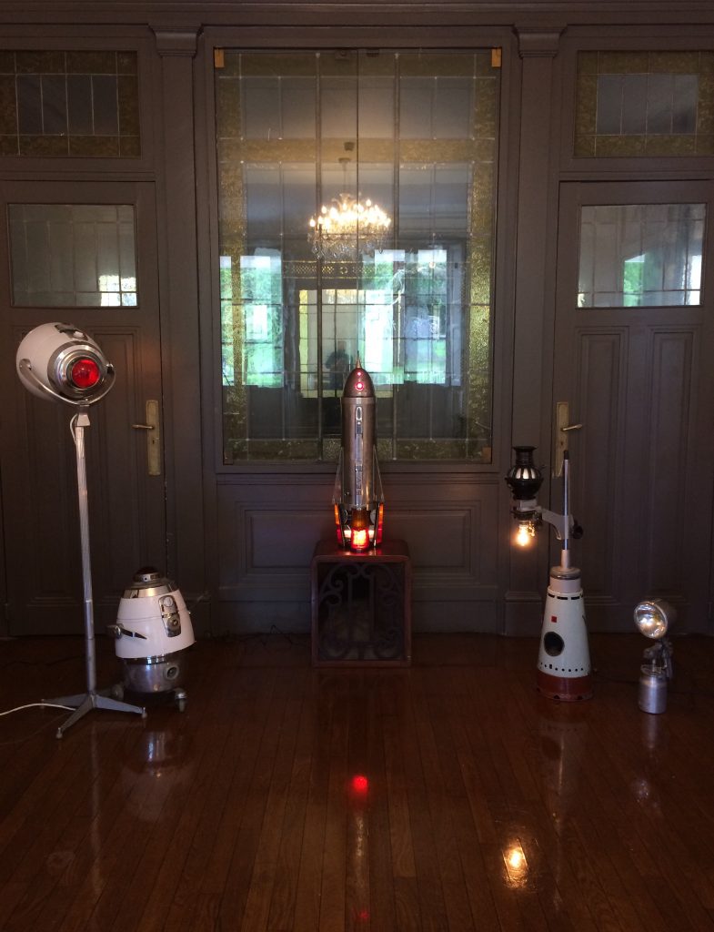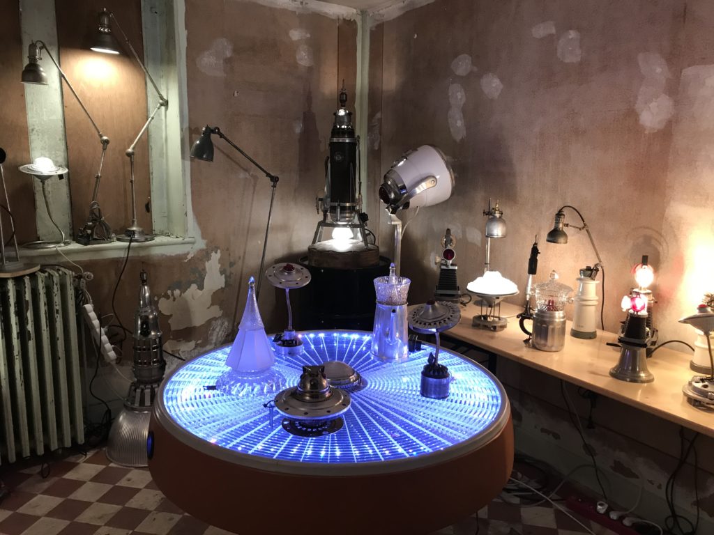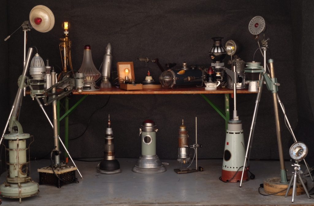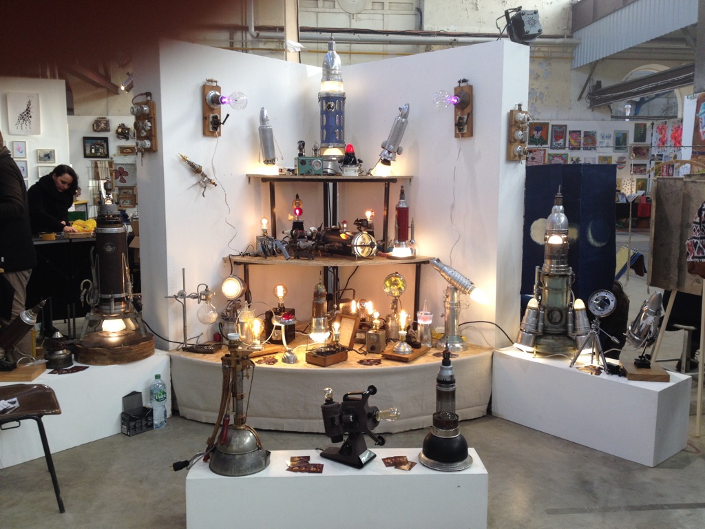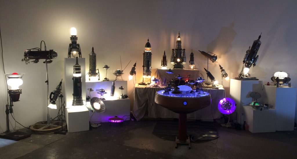 De détournements simples d’objets obsolètes ou désuets, il réalise désormais des assemblages  plus élaborés avec “Mises en lumière” de styles Indus, Steampunk et surtout Atompunk!