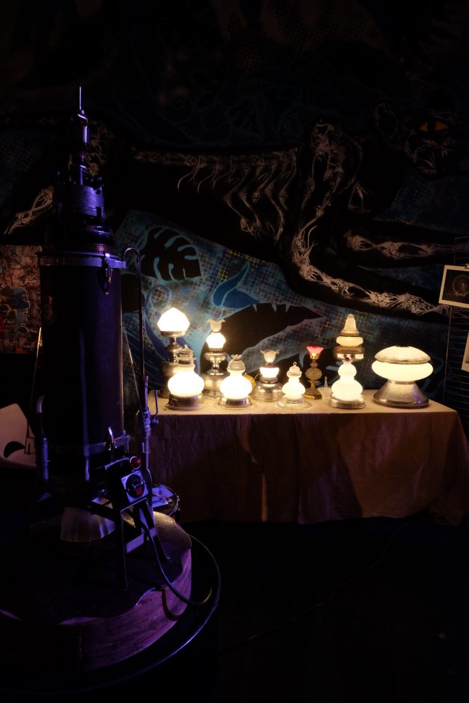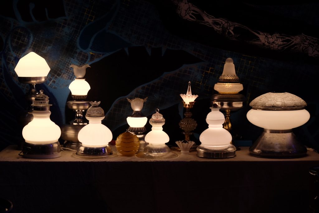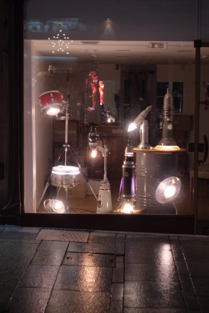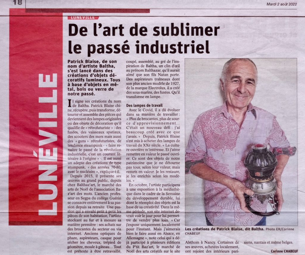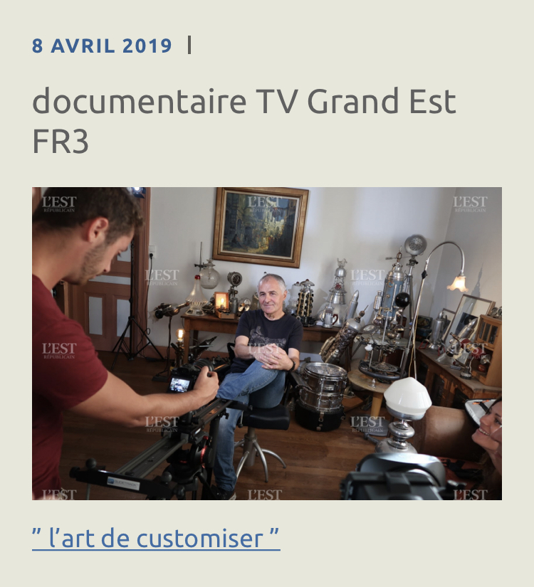 De détournements simples d’objets obsolètes ou désuets, il réalise désormais des assemblages  plus élaborés avec “Mises en lumière” de styles Indus, Steampunk et surtout Atompunk!
