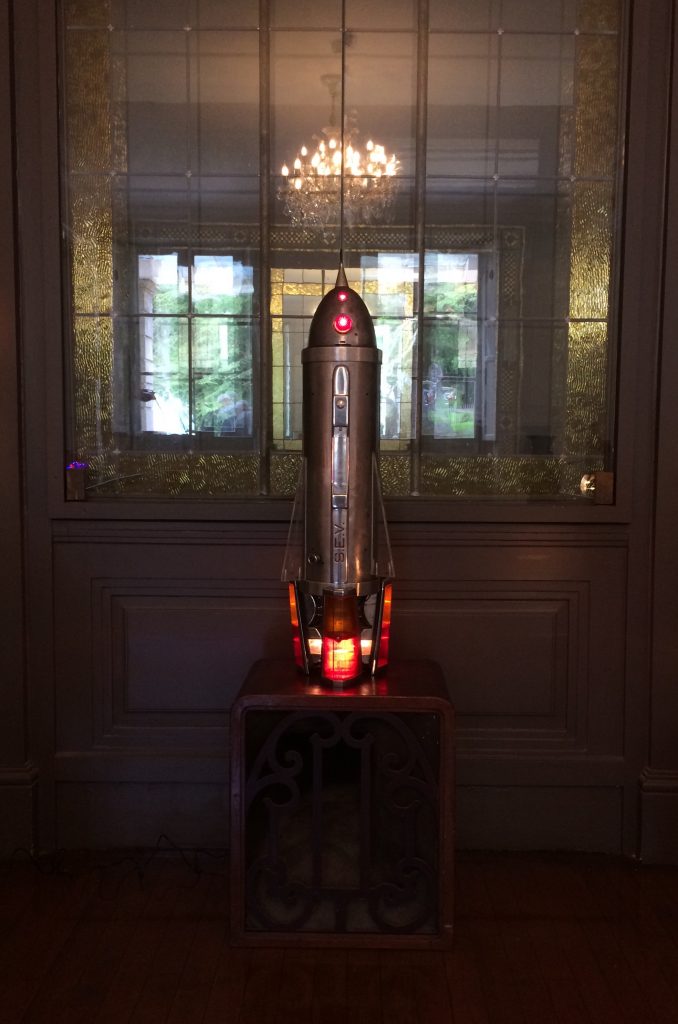 Réminiscences de son enfance, engins des débuts de la conquête spatiale (1957/1969) modélisés ou engins SF à la Buck Rogers et Flash Gordon (1930/1940) façonnés ou engins spatiaux rétrofuturistes originaux sculptés, tous, tentatives de réenchantement du réel présent, lui permettent d’imaginer un monde alternatif pour “Ad astra” (“en vol vers les étoiles”) rêver !