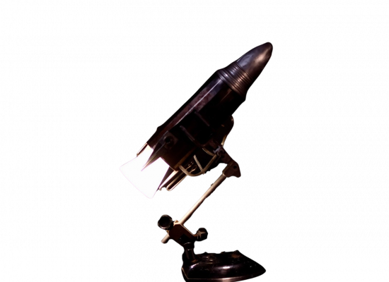 Fusée moyen format, alu mordoré, “Délurée”, décomplexée, libre de ses attaches, s’envole au ciel, loin … vers l’infini et au- delà …